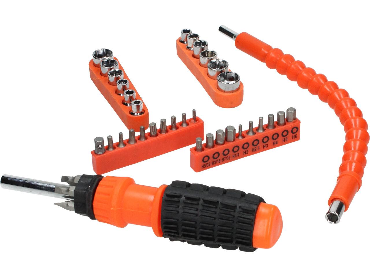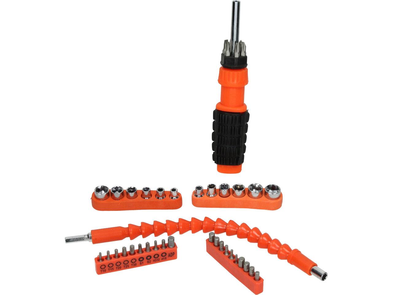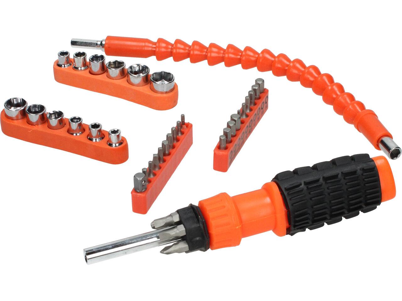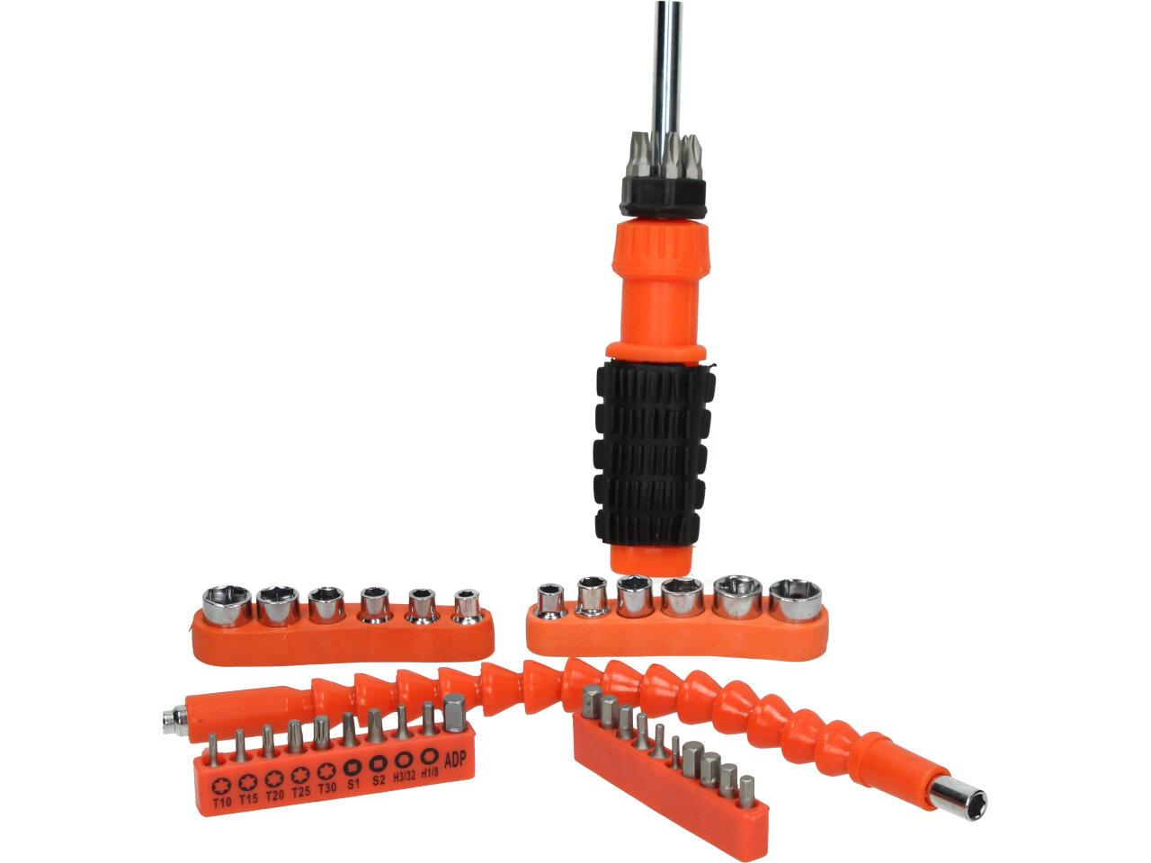 Sada 43 kusů šroubovák s bity a nástavcem JingFeng, s touto sadou vás žádné šroubování nepřekvapí, povolíte a utáhnete vše i v nepřístupných místech.