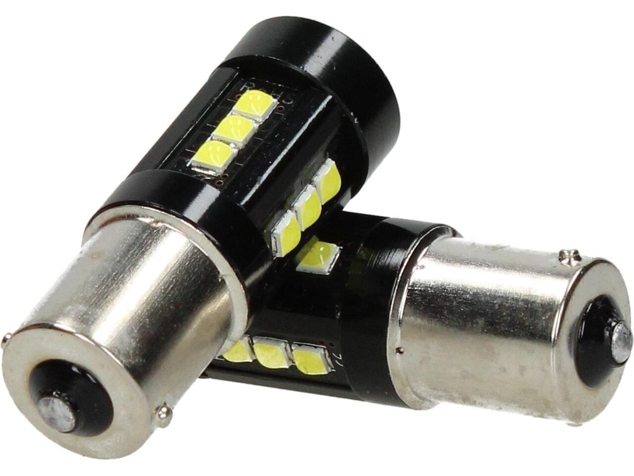 Nová generace LED autožárovek s paticí BA15s (P21W), bílá, super svítivý LED.
