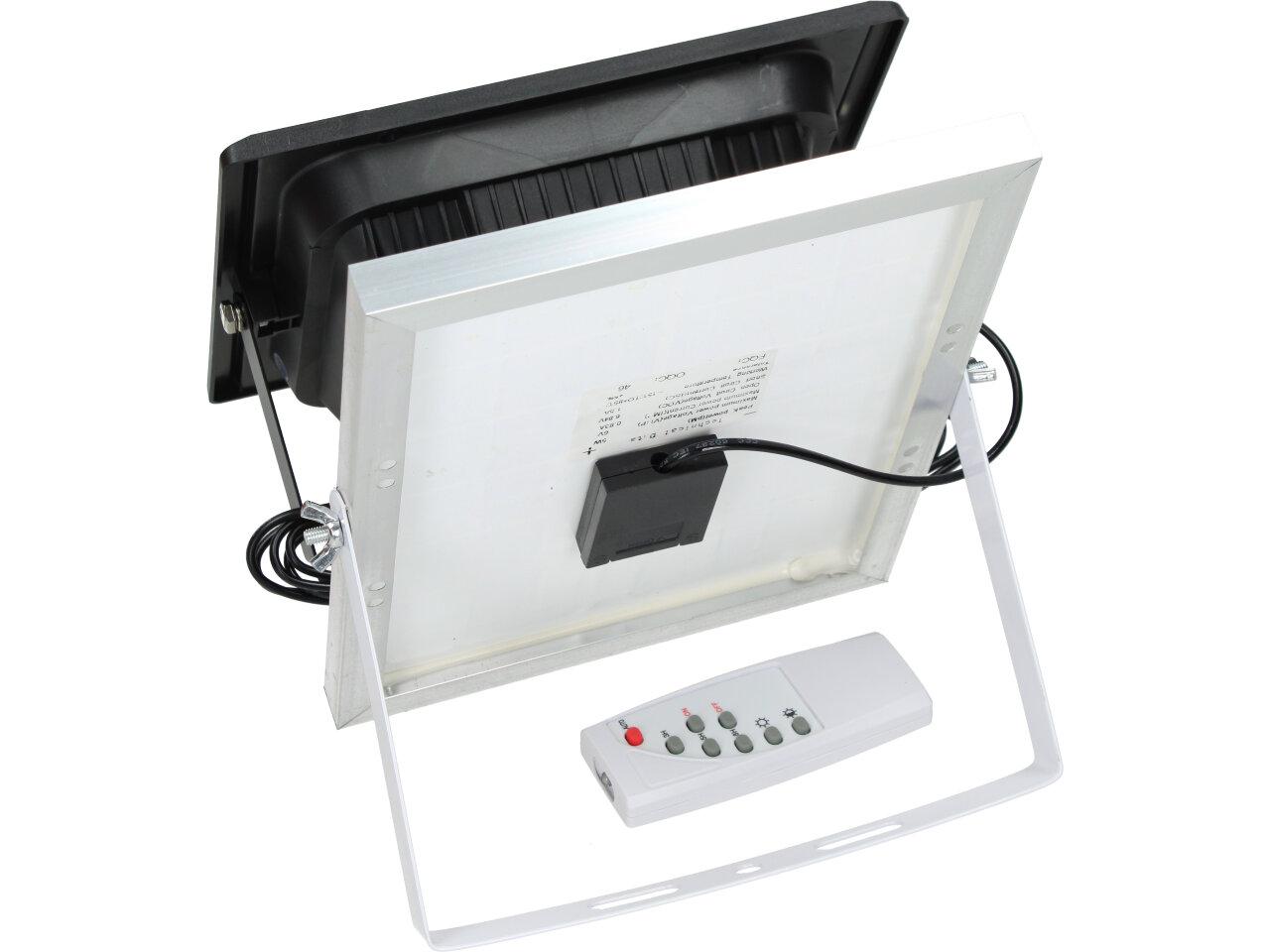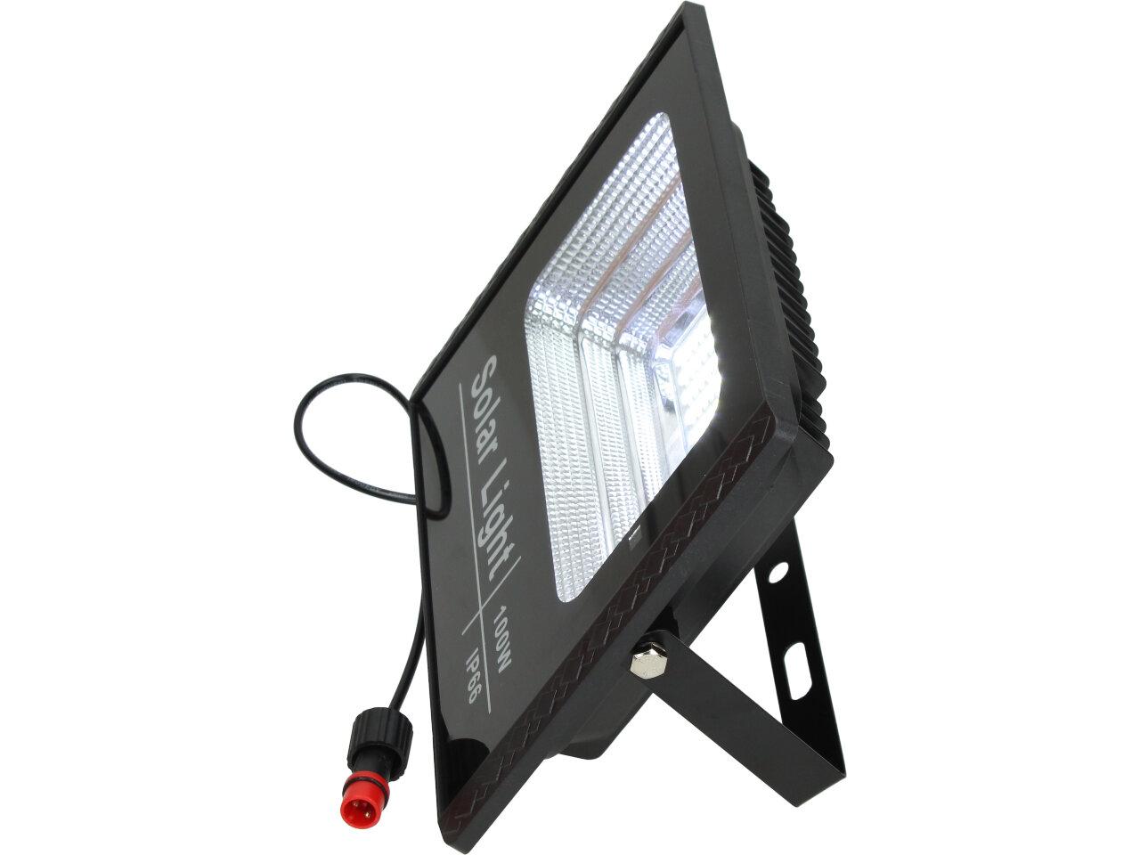Solární osvětlovací LED technika Reflektor 100W se solárním panelem a dálkovým ovladačem. Díky oddělenému solárnímu panelu můžete používat třeba v karavanu, pod stanem, nebo vjezdové bráně. Solární reflektor o výkonu 1000W svítí na vzdálenost cca 6 metrů. U solárního systému lze pomocí dálkového ovladače nastavit automatické zapnutí při setmění, stálé svícení a svícení na daný časový úsek. Pracovní doba na plné nabití cca 6-8 hodin. Spojovací materiál, držáčky a šroubky jsou součástí balení.