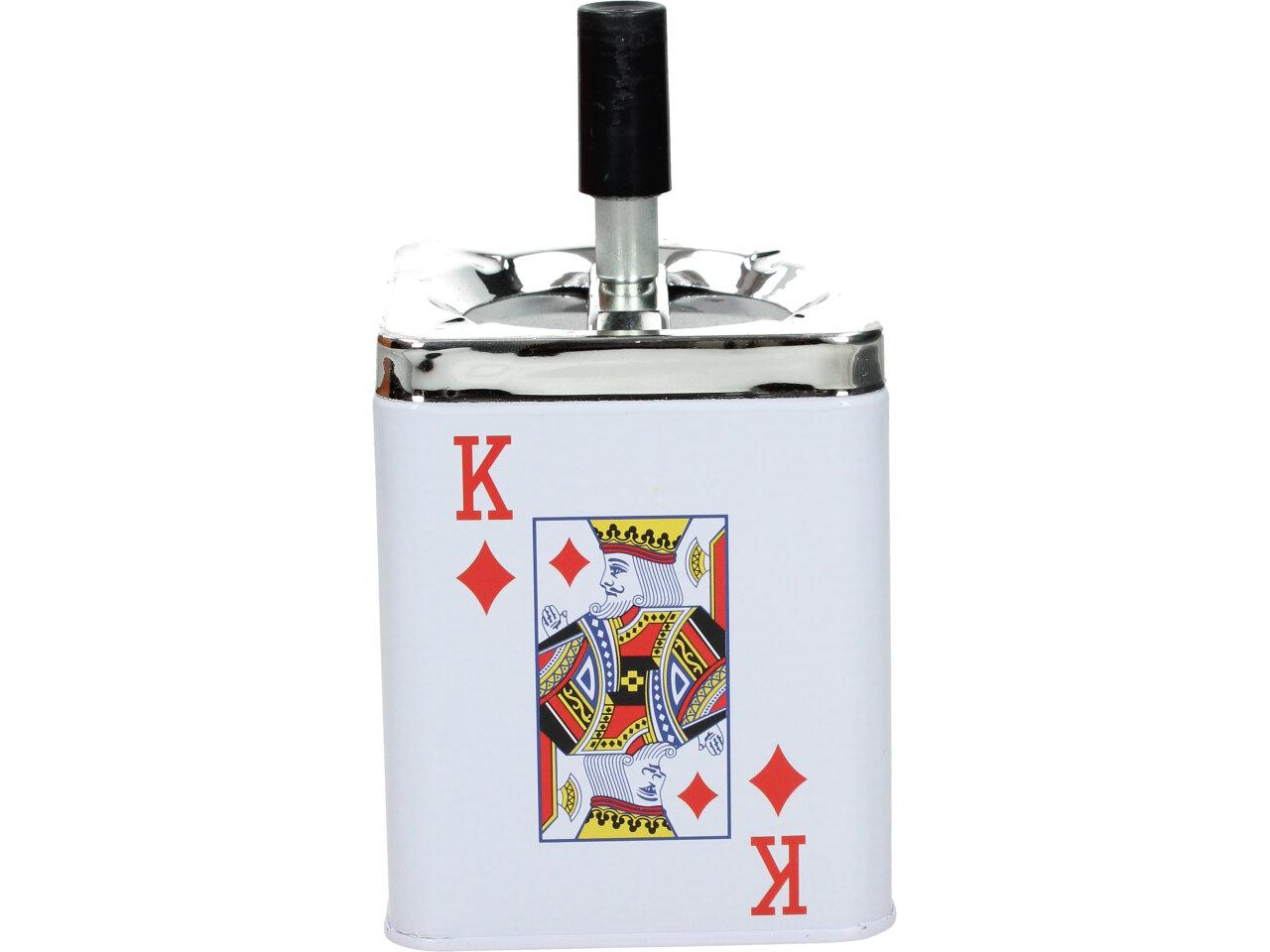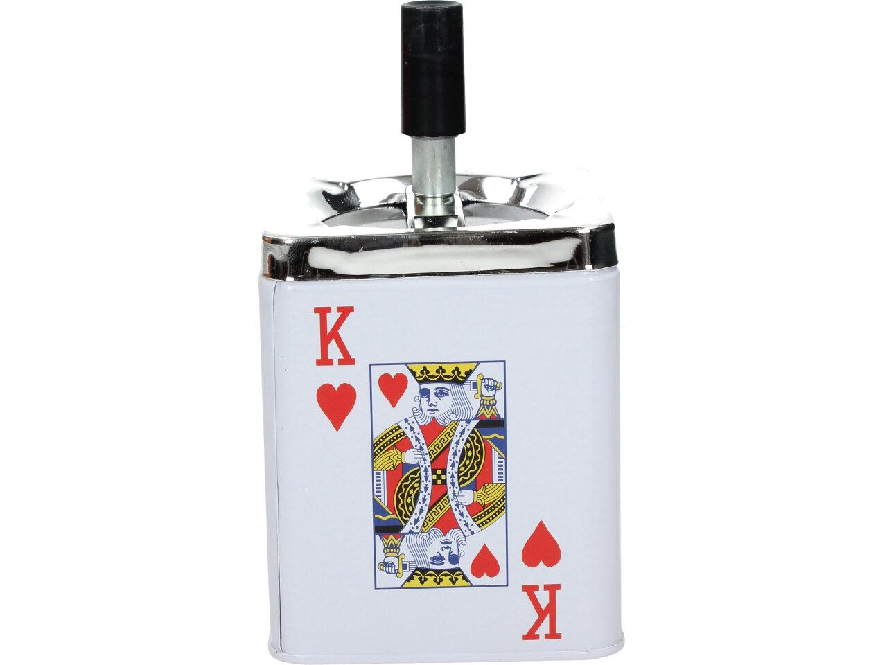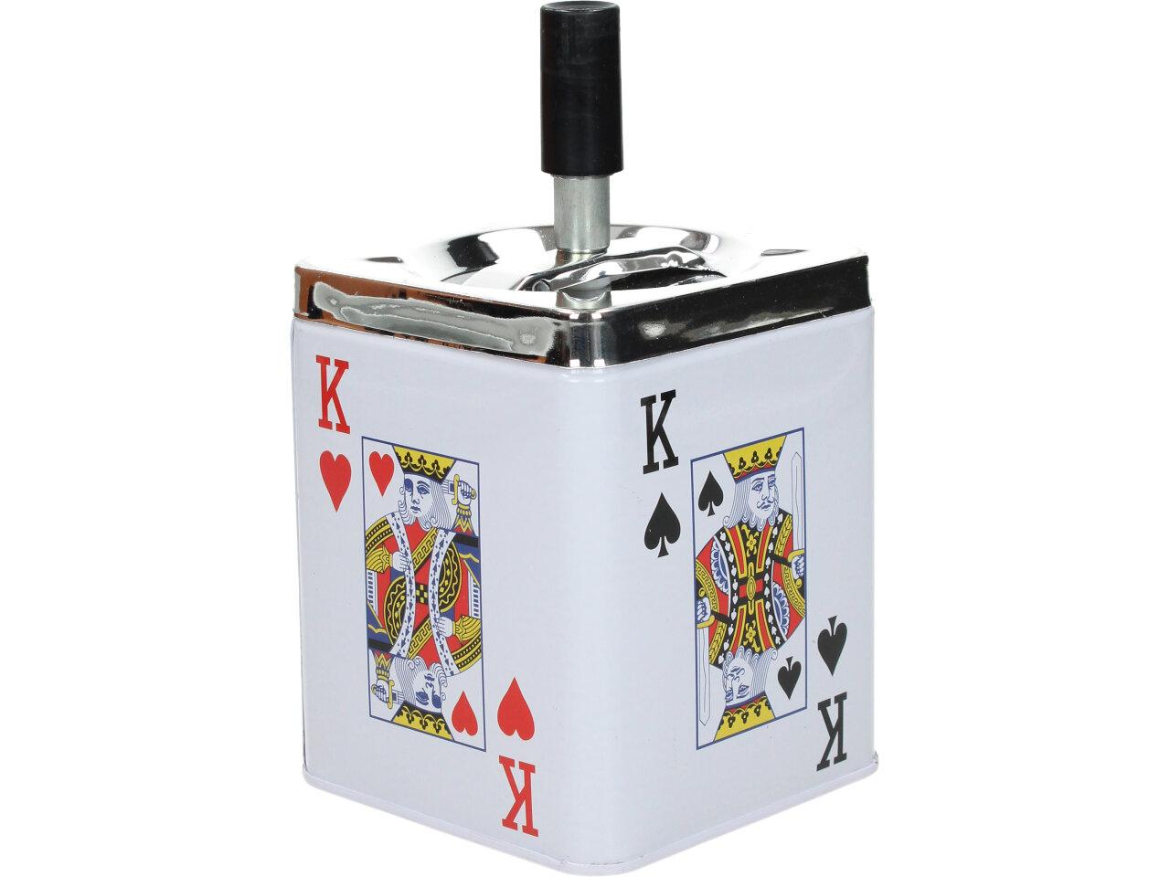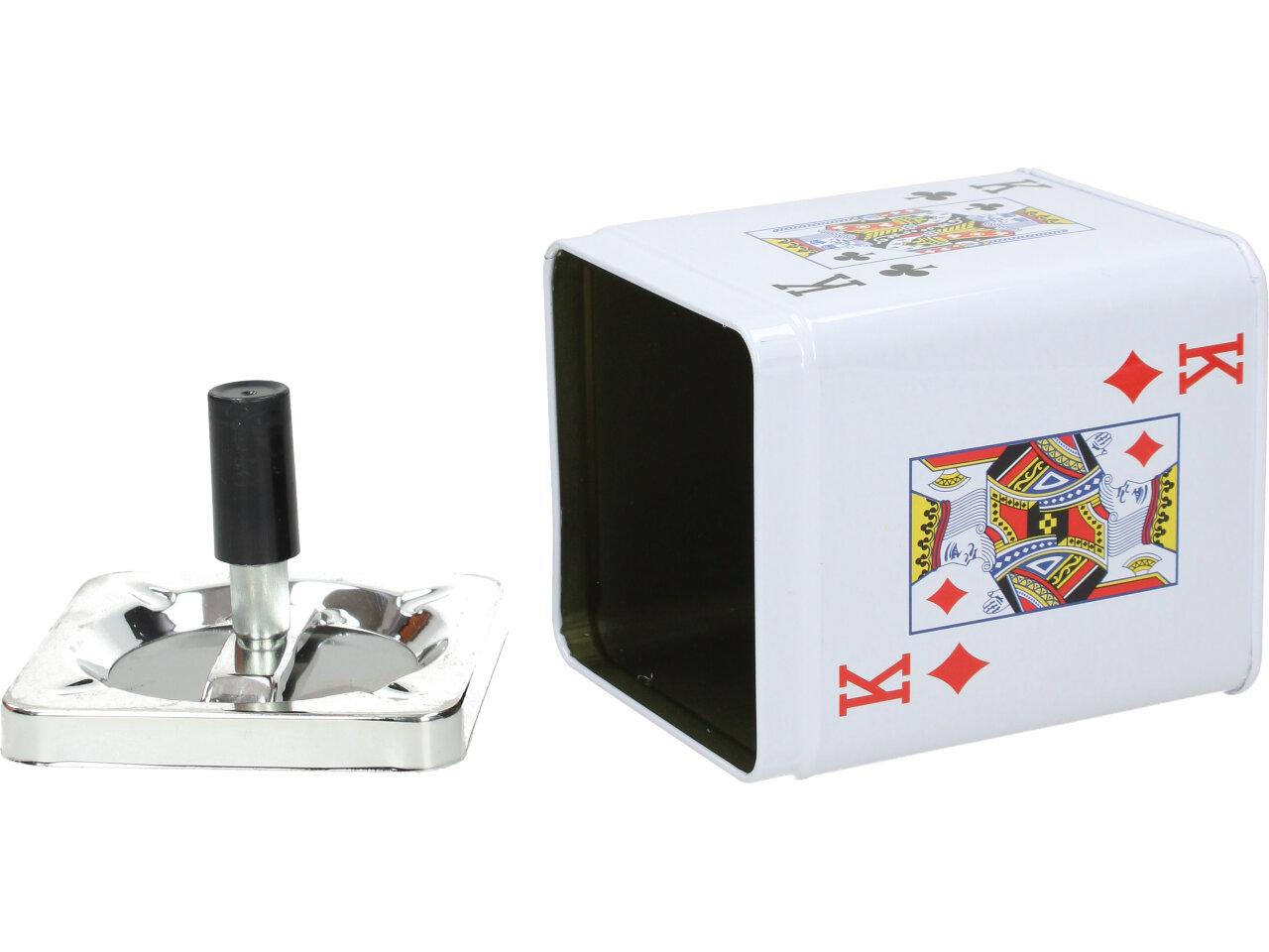 Celkově hranatý popelník se zásobníkem v designu hrací karty je zábavným prvkem pro interiéry, které hledají neformální a hravou atmosféru