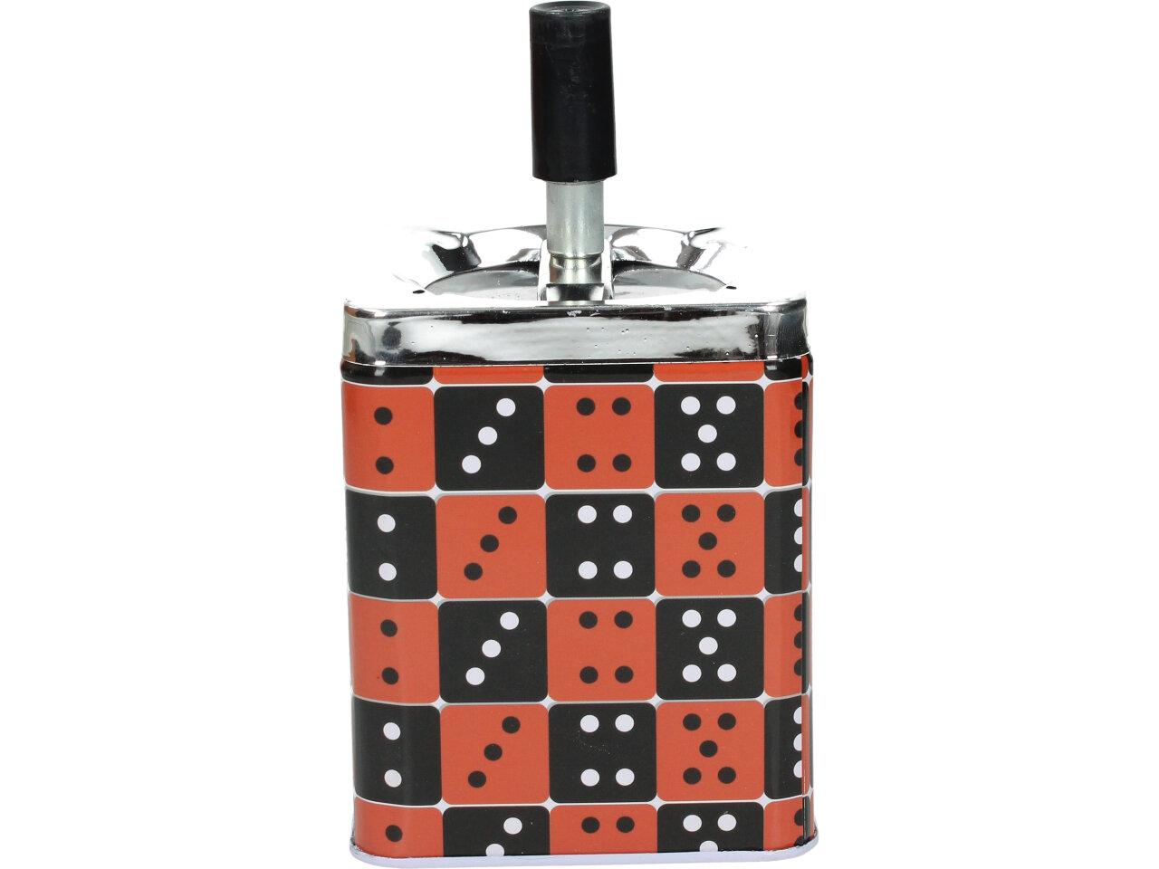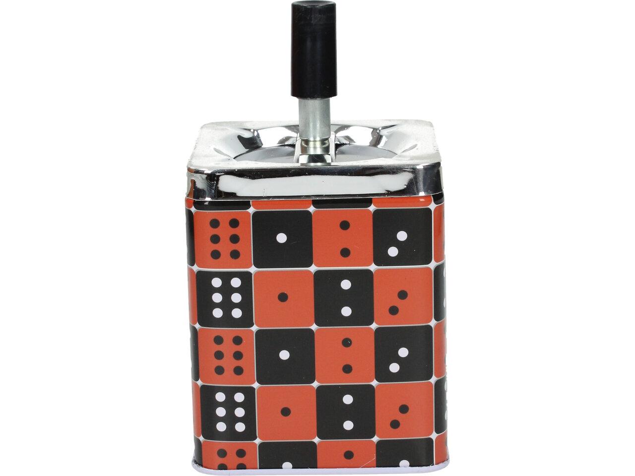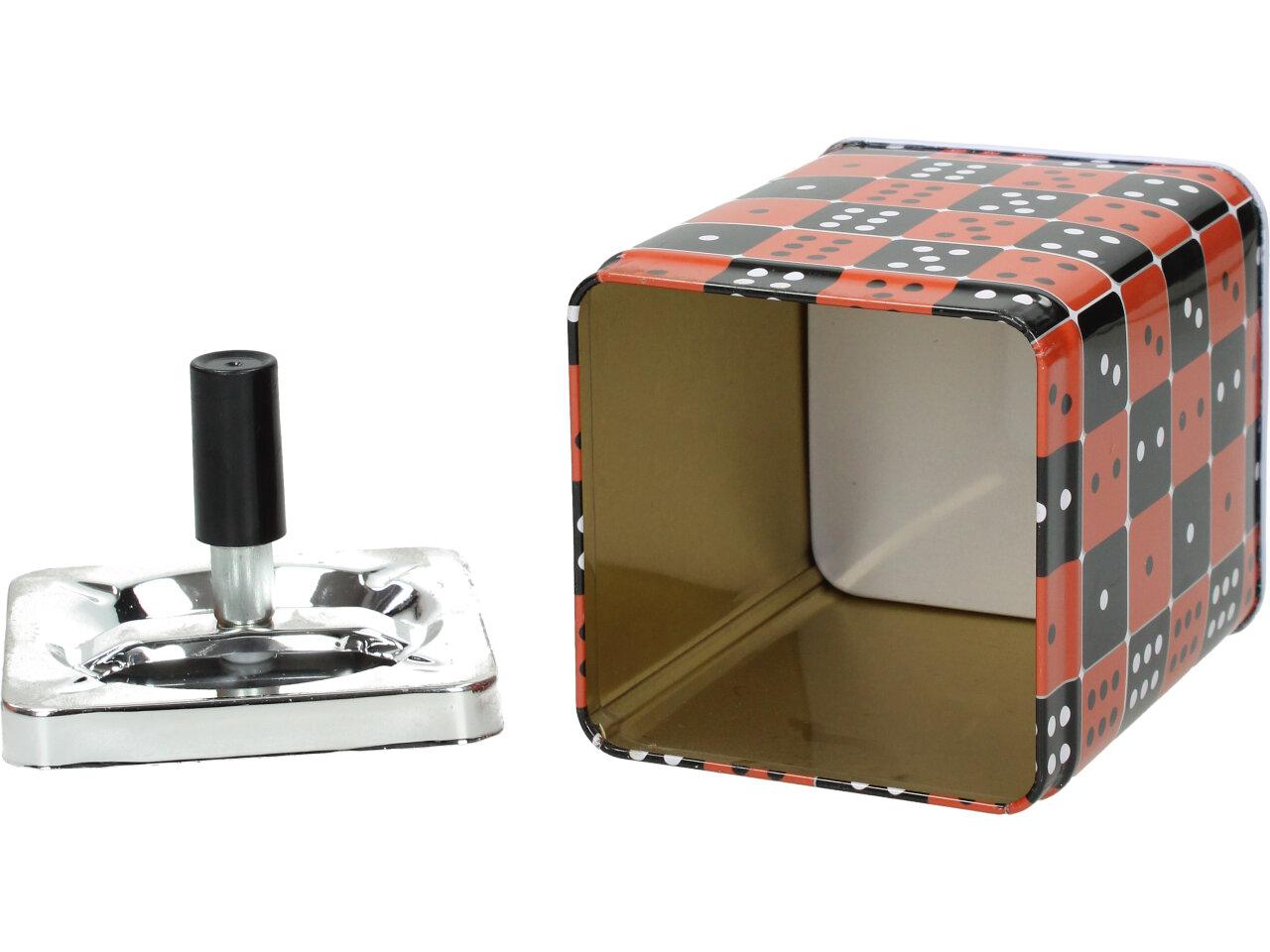 Hranatý popelník se zásobníkem je vyroben z plechu a je opatřen motivem hrací kostky. Popelník se zásobníkem je zajímavým a vtipným designovým prvkem pro interiéry, které mají rády neformální a hravou atmosféru.