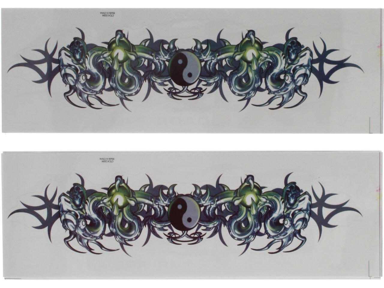 Samolepka jing jang 2 ks 30x10 je určena na auta, motocykly, notebooky, lodě, výlohy, nábytek atd. Lze lepit na každý hladký a suchý povrch, fantazii se meze nekladou. Jsou vyrobeny z kvalitní fólie užívané například pro reklamní polep vozů - tím je zajištěno, že Vám samolepky dlouho vydrží a v případě potřeby půjdou včetně lepidla odstranit bez zanechání škod na materiálu, kde byly umístěny. Lepíte pouze samolepku, pozadí je ořezané a přesah kolem obrázků průhledné.
