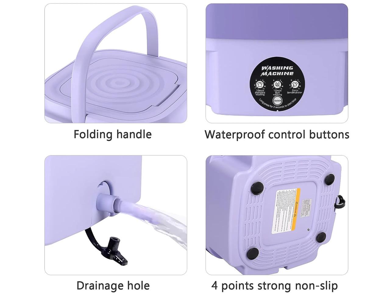 Tato přenosná pračka má koš na ždímání, který umožňuje prát a ždímat oblečení v jednom spotřebiči. Vzhledem k tomu, že praní a ždímání jsou integrovány, je vhodná pro studenty, kteří bydlí na koleji, rodiny, které rády cestují, a všechny, kteří mají rádi čistotu. Díky tomu je to také promyšlený dárek pro vaše přátele a rodinu.