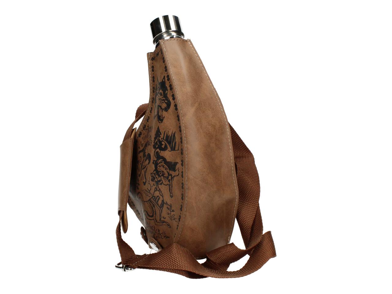 Placatka přes rameno je ideální na delší cesty, na tůry, čundry, festivaly i pochody. Placatka je chráněna v pevném koženém pouzdře, které je vybaveno dlouhým uchem přes rameno. Vyrobeno z nerezového pevného kvalitního materiálu a na vrchu placatky je klasické šroubovací víčko, aby se vám vás oblíbený nápoj nevylil. Uchová na delší dobu i teplý čaj, svařák, grog, atd.