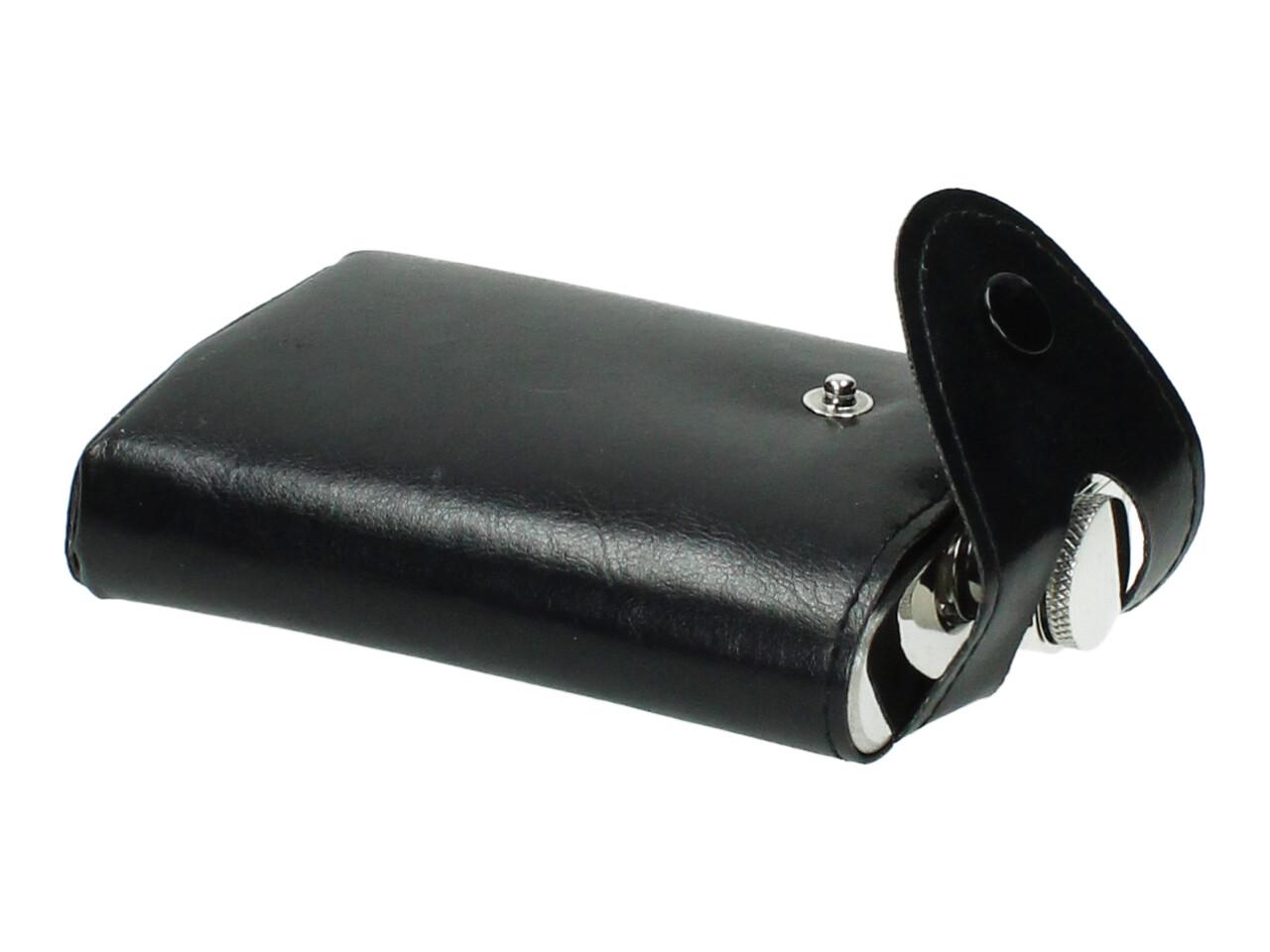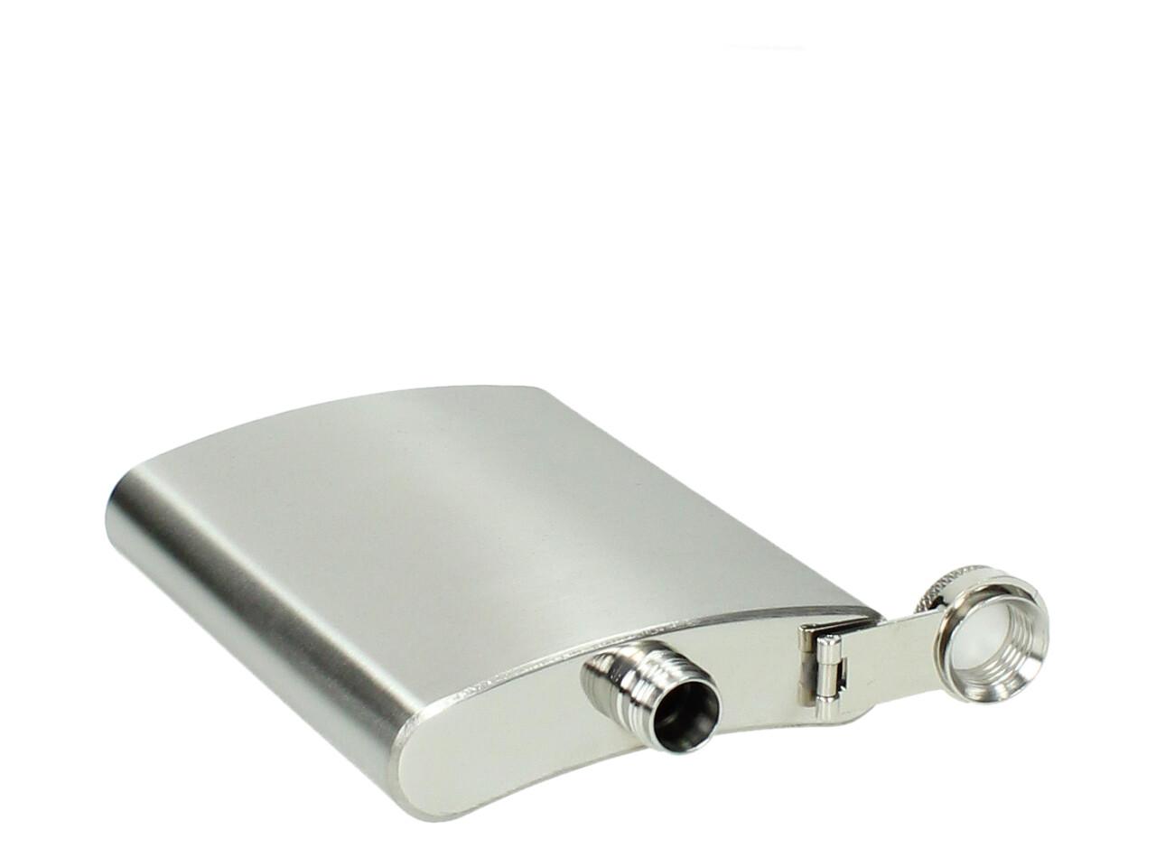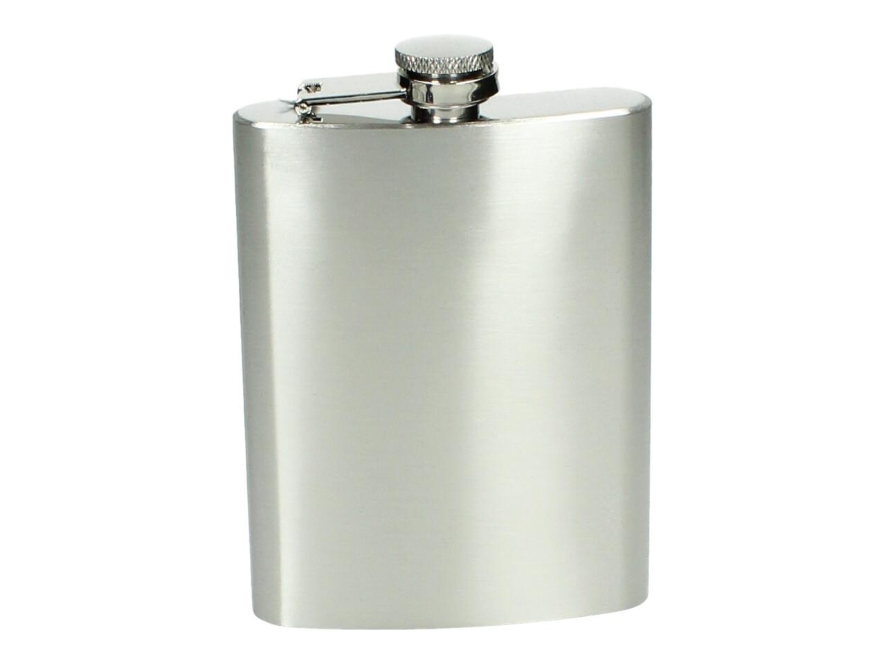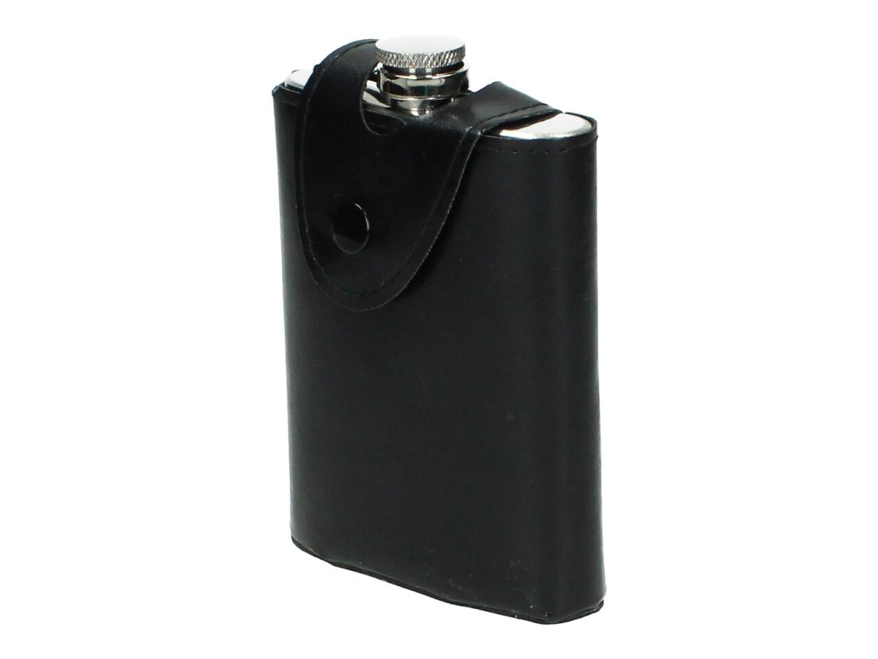 Plastka na cesty na alkohol z nerezu a bez vzoru dodávána s pouzdrem z umělé kůže s možností připevněním na opasek. Placatka nerez bez pruhů 235 ml (8oz) na alkohol nebo jiný nápoj. Ideální do náprsní kapsy Rozměry 13x9 cm s uzavíratelným víčkem o objemu 2,66 ml