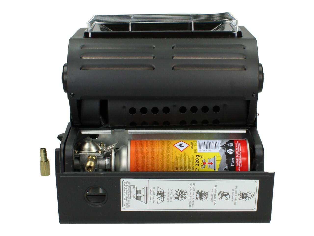 Sporák může také sloužit jako plynový sporák v chladných dnech. Díky speciálnímu mechanismu lze topný panel snadno nastavit do svislé polohy pro extra teplo.