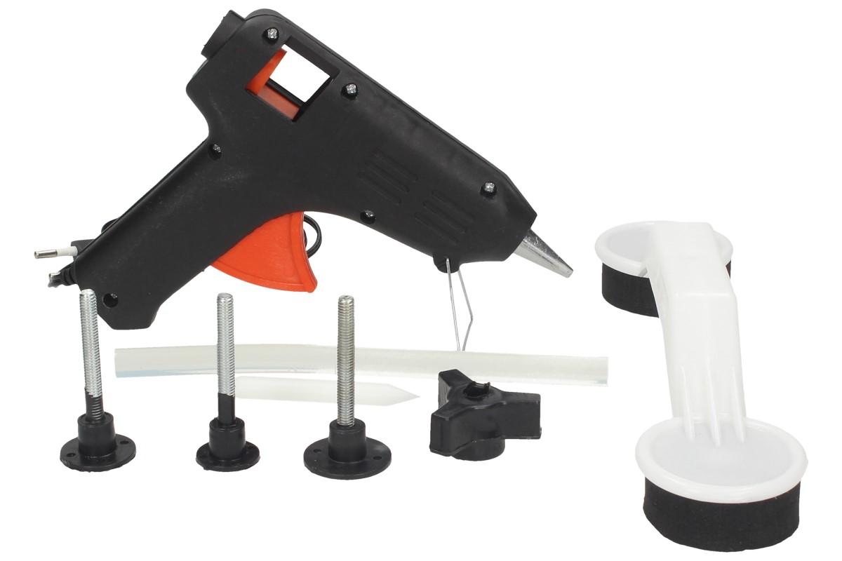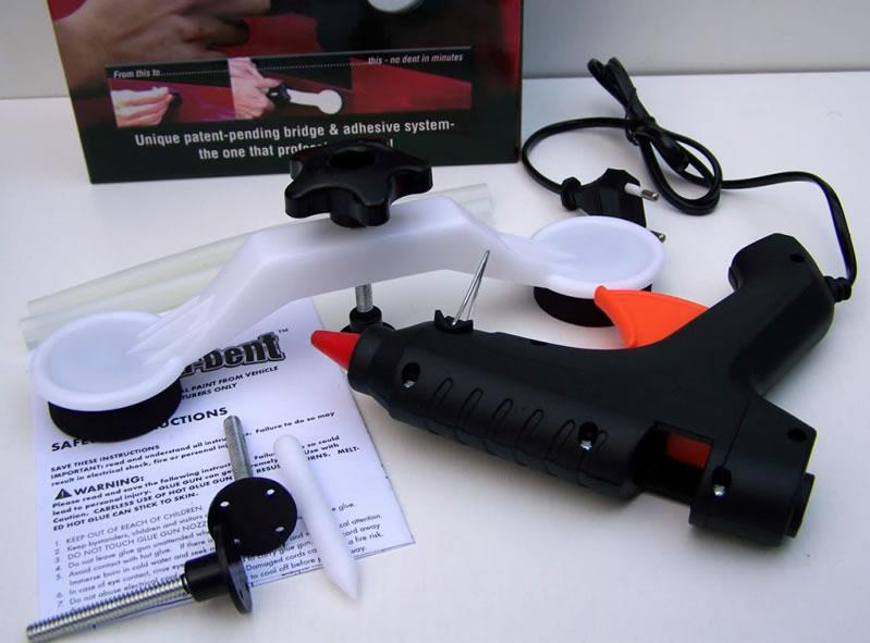 Sada na opravu promáčklin karoserie má velmi snadné použití. používá se jak v profesionálních dílnách, tak i v domácích garážích pokud k poškozenému místu nemáte přístup z druhé strany pro jeho klasické vyklepání. Tato revoluční sada na opravu promáčklin karoserie Vám ušetří mnoho peněz za opravu v odborné dílně. Proč platit někde za to, co si můžete udělat doma? Neváhejte a kupte si tuto revoluční opravnou sadu pro opravu promáčklin na karoserii.