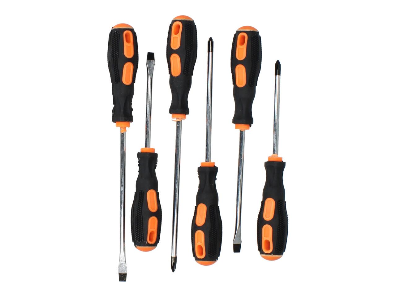 6 kusů šroubováků s pogumovanou rukojetí, 3x plochý a 3x křížový